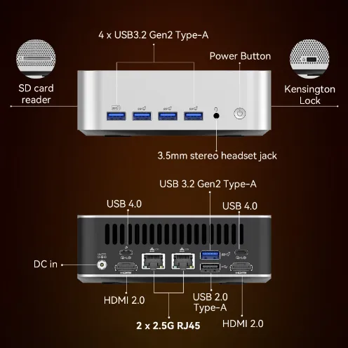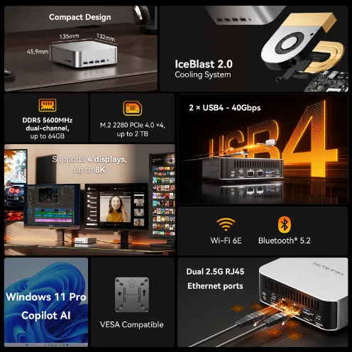 - Abundant I/O ports + 200kg pressure-resistant chassis – dual USB 4.0 ports, 2.5Gb Ethernet port, and shockproof design. Connect to a monitor/hard drive for home office use, or easily fit into a commuter bag – ideal for UK renters and remote workers